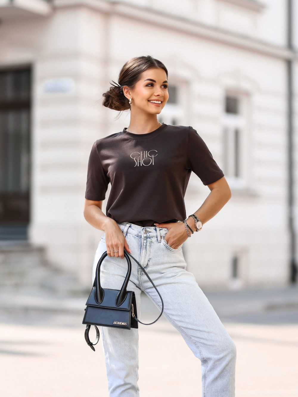 T-SHIRT CHIC SHOT- Brązowy
