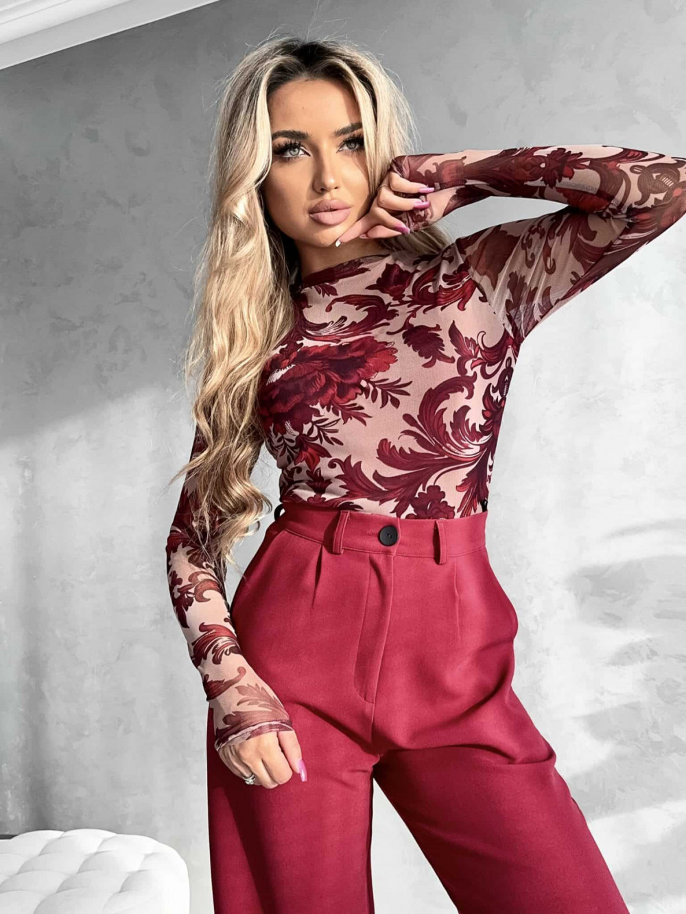 Bluzka SKIN IV transparent – wino-beżowa