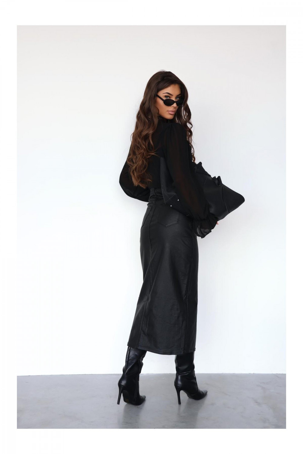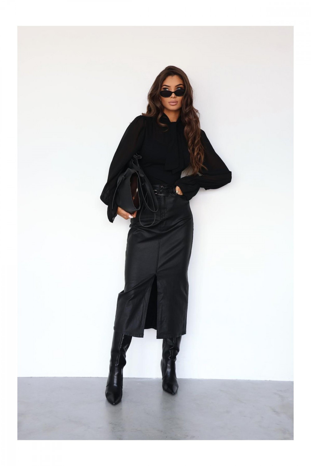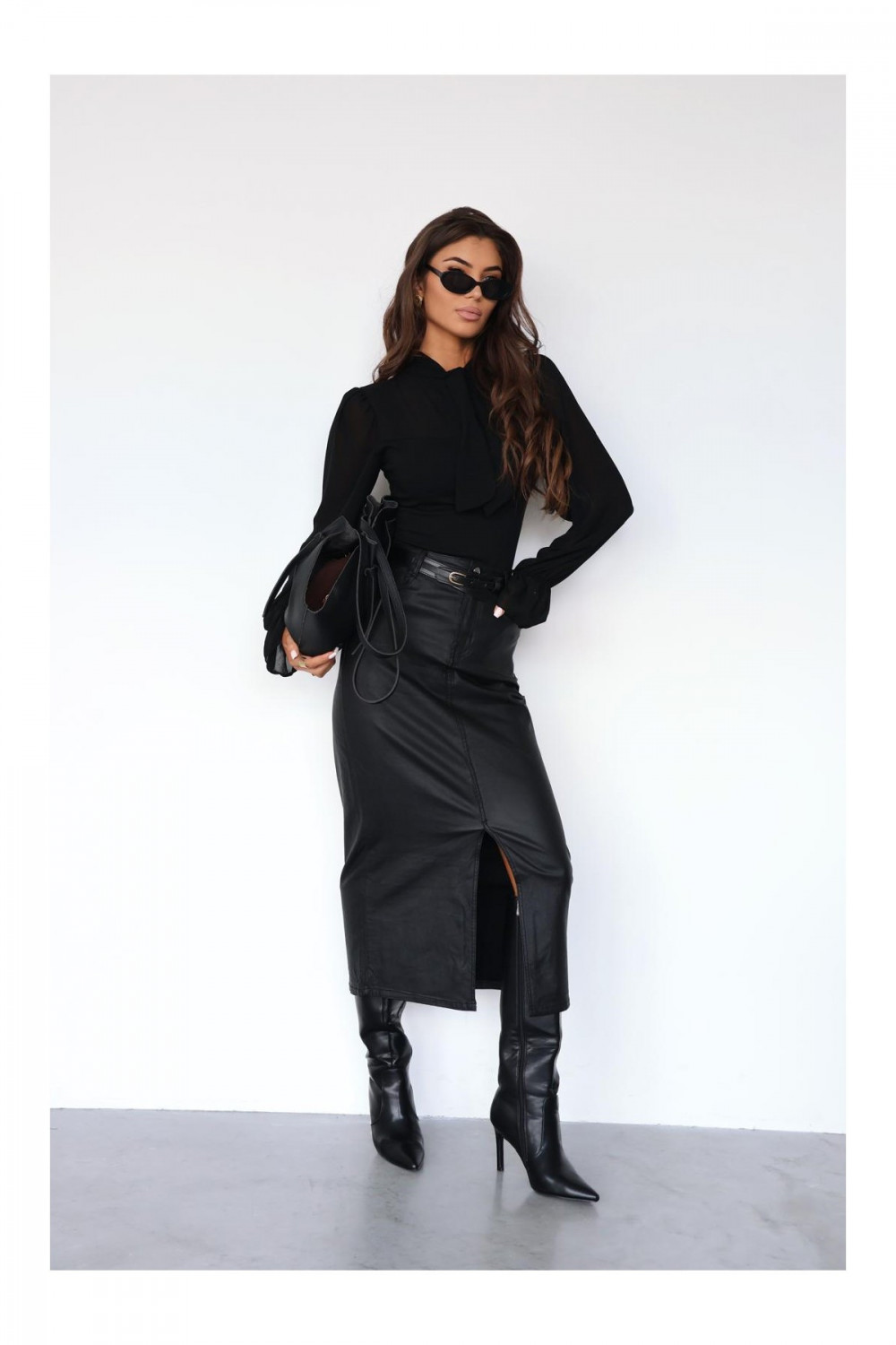 Elegancka spódnica wykonana z wysokiej eko-skóry to propozycja dla kobiet, które kochają styl i klasę.Ołówkowy fason pięknie, podkreśla sylwetkę, a wysoki stan optycznie wysmukla talię.Długość midi dodaje elegancji, a efektowne rozcięcie z przodu nadaje całości nowoczesnego i zmysłowego charakteru.
