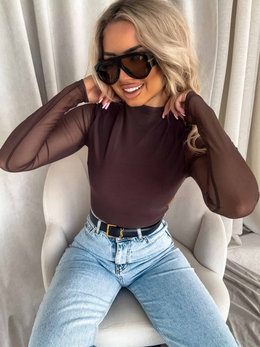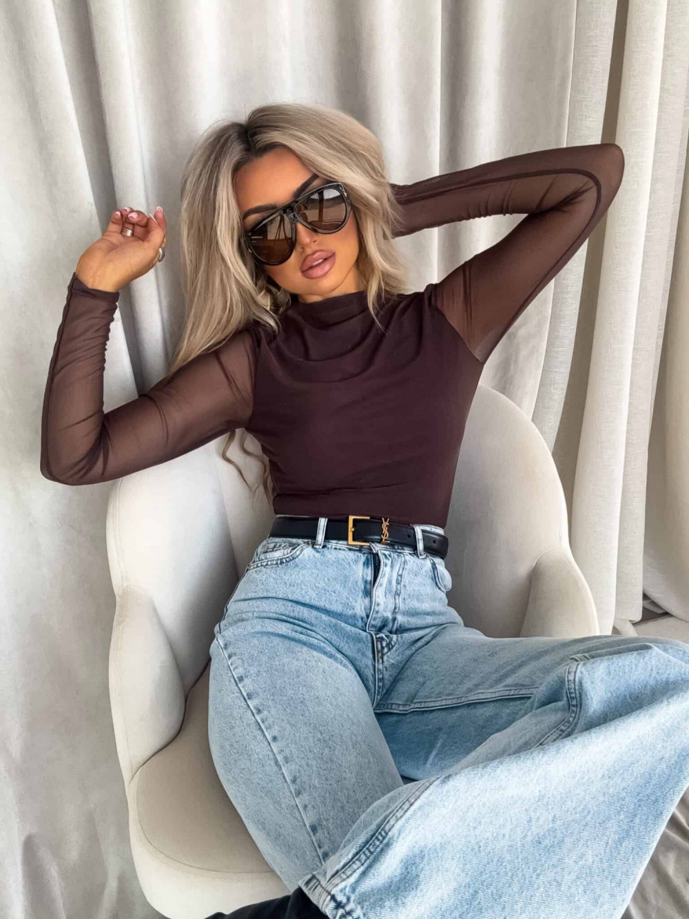 Bluzka SKIN o dopasowanym kroju sprawdzi się jako baza do wielu różnorodnych stylizacji. Wykonana z bardzo delikatnej miłej w dotyku siateczki. Przód i tył z delikatną podszewką, dzięki której nic nie prześwituje. Charakteryzuje się rękawem typu long sleeve. Jej krój zagwarantuje komfort i wygodę noszenia. Delikatna stójka.