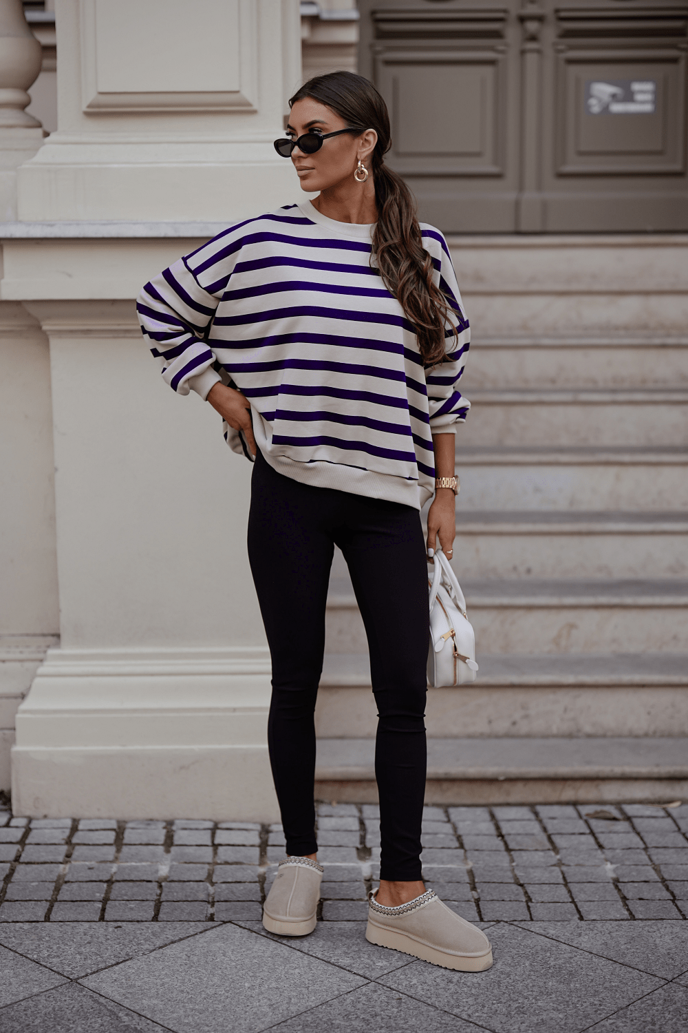 Bluza STREL pasy beż i granat to idealny wybór dla osób, które cenią sobie komfort oraz styl w codziennym wyglądzie. Wykonana z wysokiej jakości materiałów, bluza zapewnia nie tylko przyjemność noszenia, ale także trwałość.Jej unikalny design wyróżnia się beżowo-granatowymi paskami, które nadają odzieży nowoczesny i elegancki charakter. Ta bluza doskonale komponuje się z różnorodnymi stylizacjami, dlatego bez trudu można ją zestawić zarówno z dżinsami, jak i spódnicą.