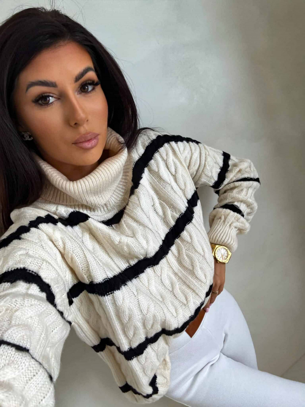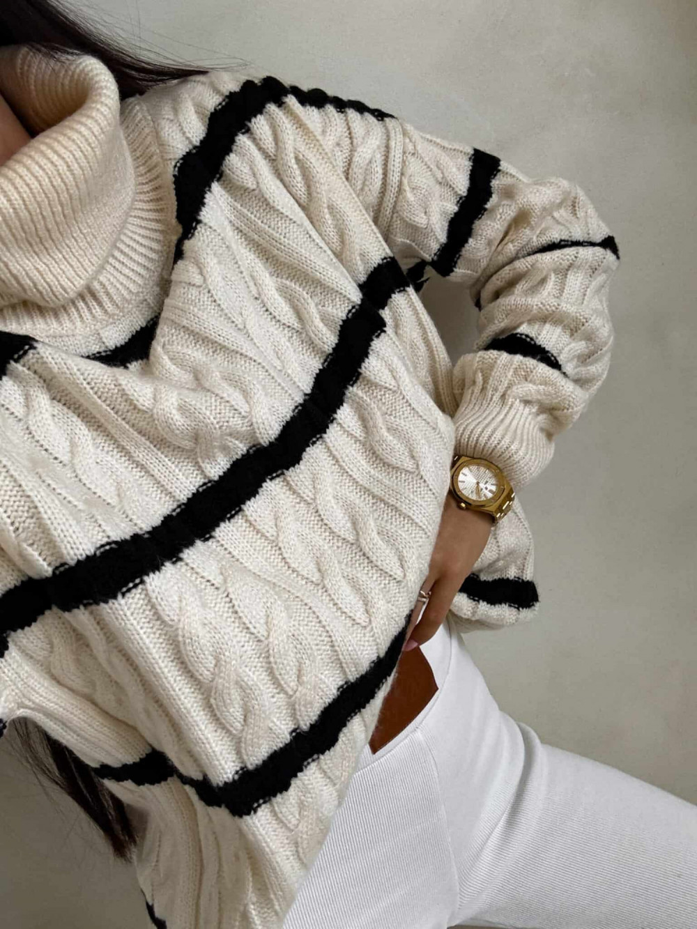 Sweter golf INKO pasy - Waniliowo- Czarny