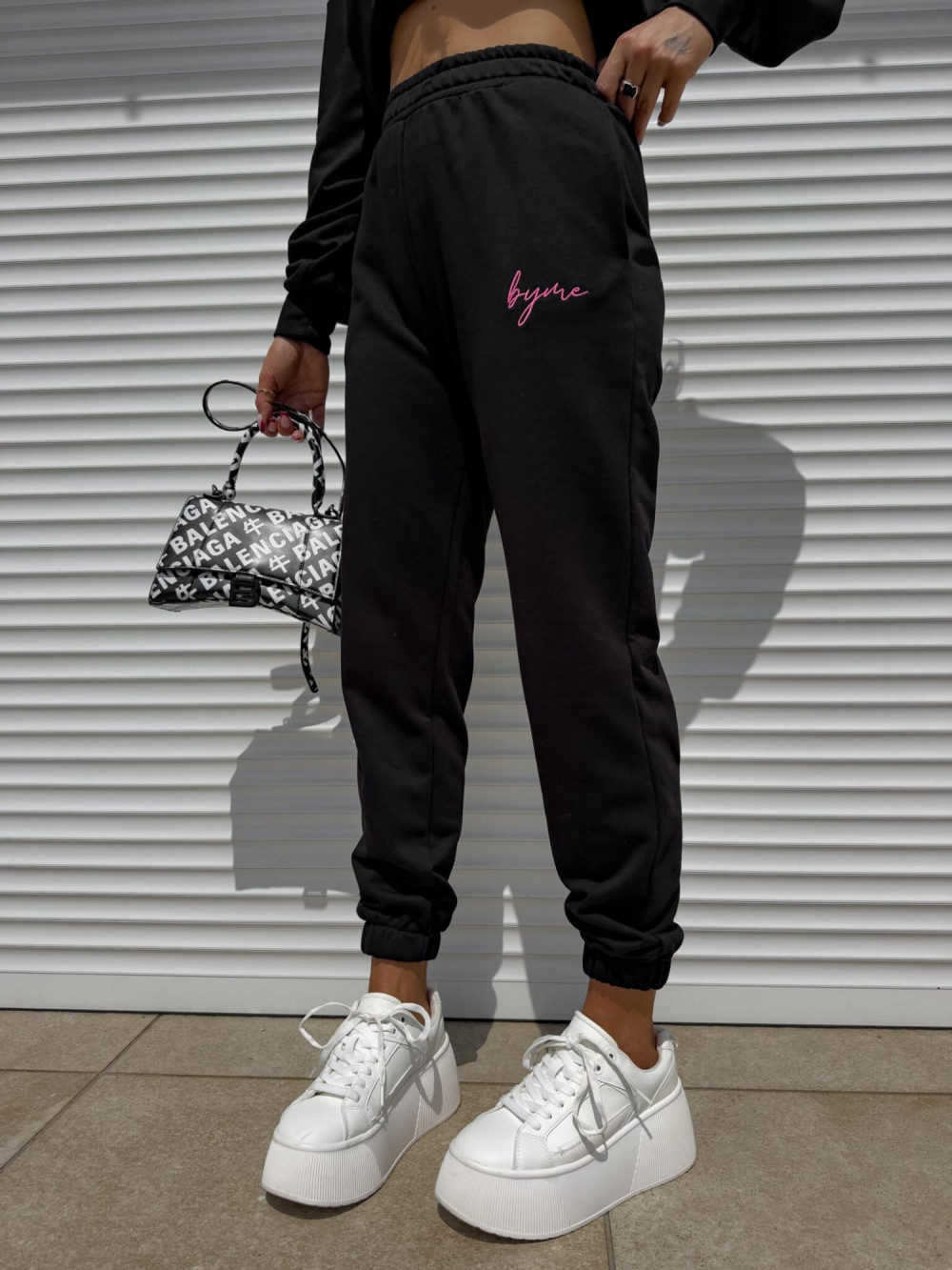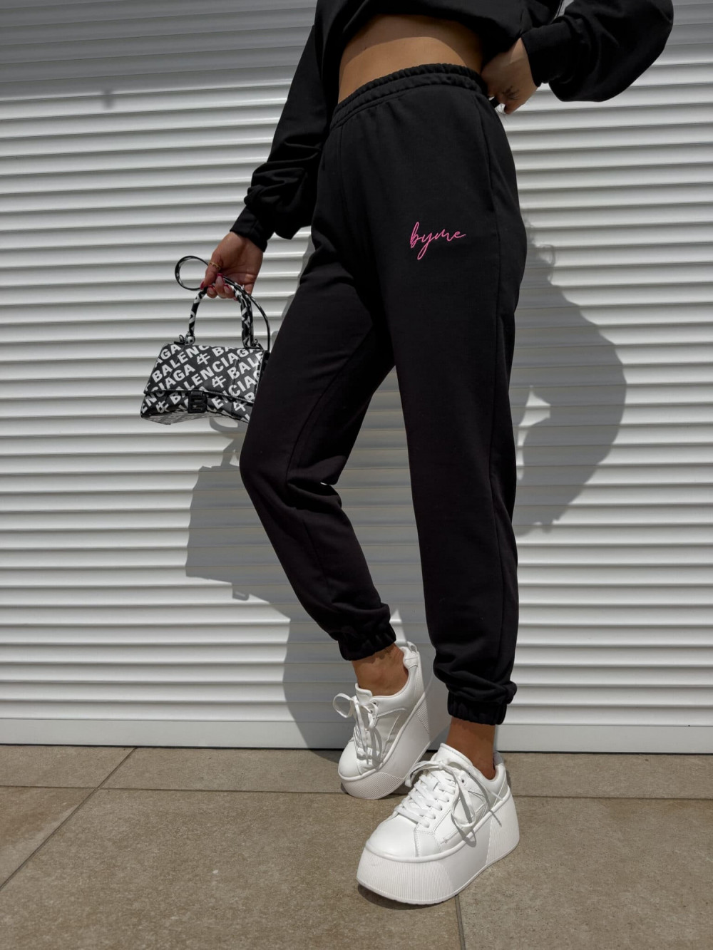 Spodnie dresowe wykonane z miękkiego materiału, idealne do codziennego użytku oraz aktywności sportowych. Nogawki zakończone są praktyczną gumką, która zapewnia wygodę i dopasowanie do ciała. W pasie znajduje się elastyczna gumka, która umożliwia komfortowe noszenie i odpowiednie dopasowanie. Spodnie ozdobione są subtelnym logowaniem na nogawce w delikatnym, różowym kolorze, co dodaje im modnego i stylowego charakteru. Wyposażone są w praktyczne kieszenie po bokach, idealne do przechowywania drobnych przedmiotów. Idealne połączenie funkcjonalności i designu.