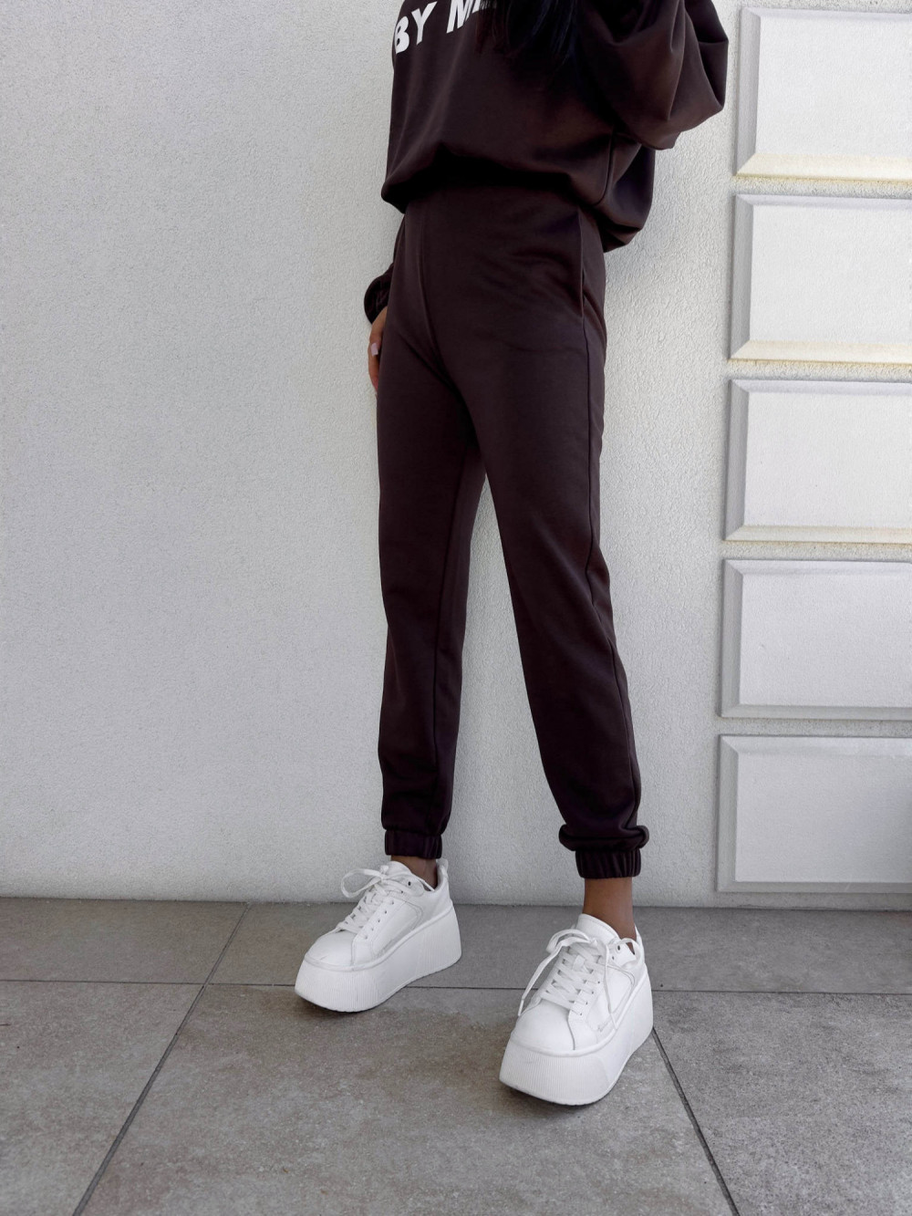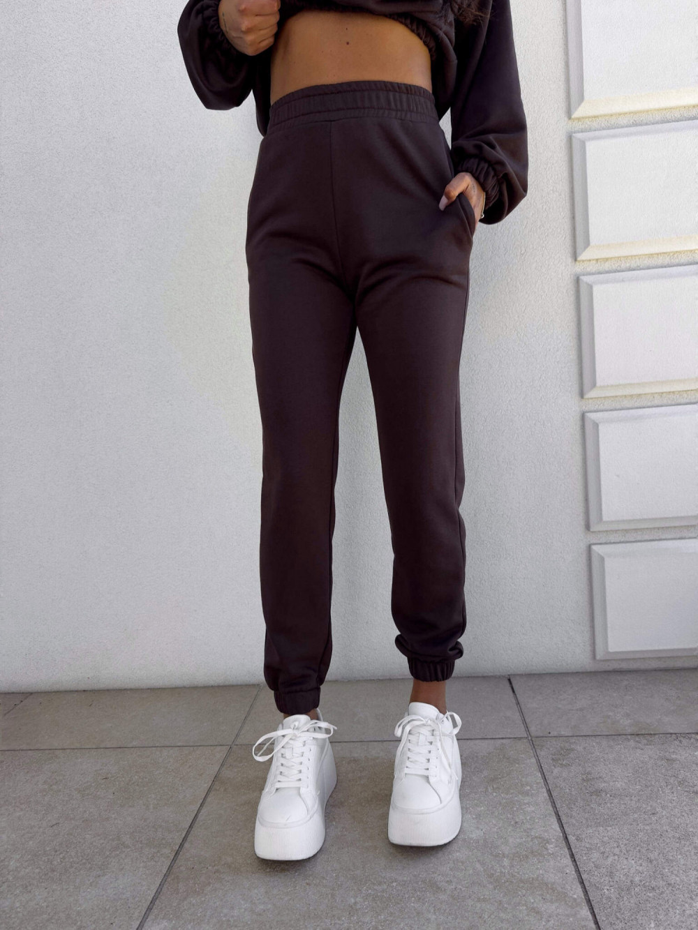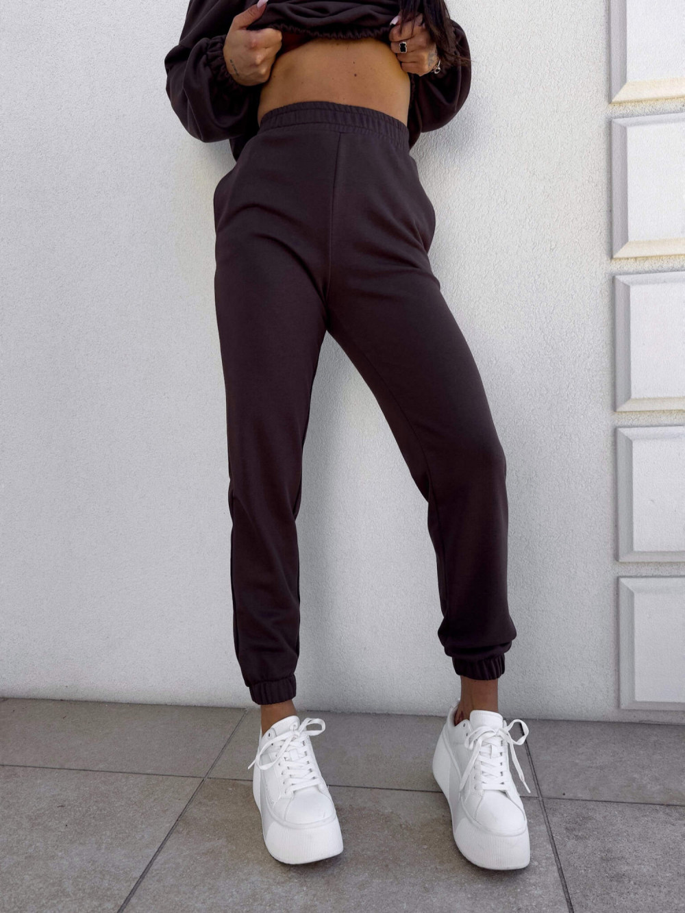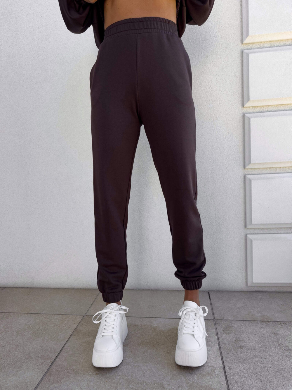Spodnie dresowe – dopasowane, z elastycznym pasem w talii i ściągaczami na dole nogawek. Ich krój podkreśla sylwetkę, zachowując jednocześnie pełną swobodę ruchów.